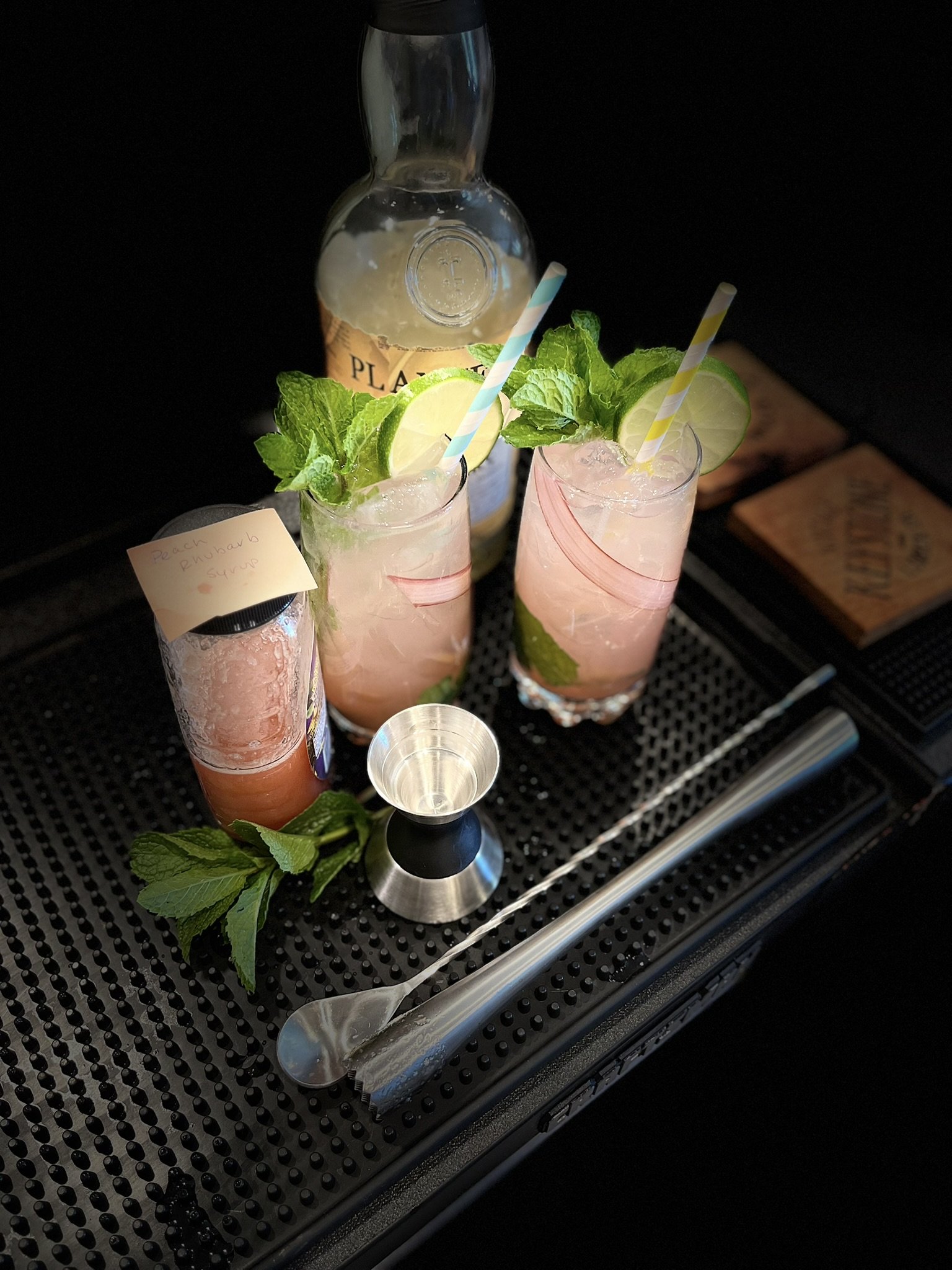 A favorite summer drink, the Mojito - taken up a notch with the addition of a homemade peach-rhubarb syrup, or any other summer flavor you can think of!